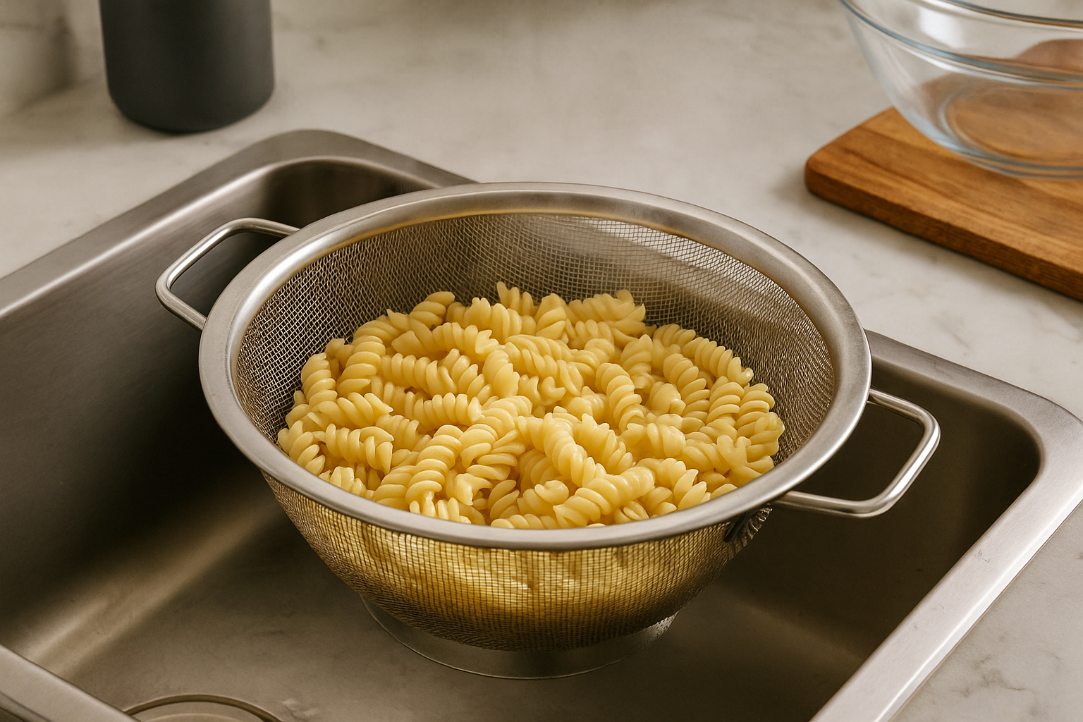 Bring a large saucepan or pot of salted water to a boil over high heat. Add the rotini pasta (or your preferred short pasta) and cook according to the package directions, usually 8–10 minutes. Stir occasionally to prevent sticking. Once cooked, drain the pasta using a colander and rinse briefly under cold water to stop the cooking process and cool the pasta for the salad. Set aside.