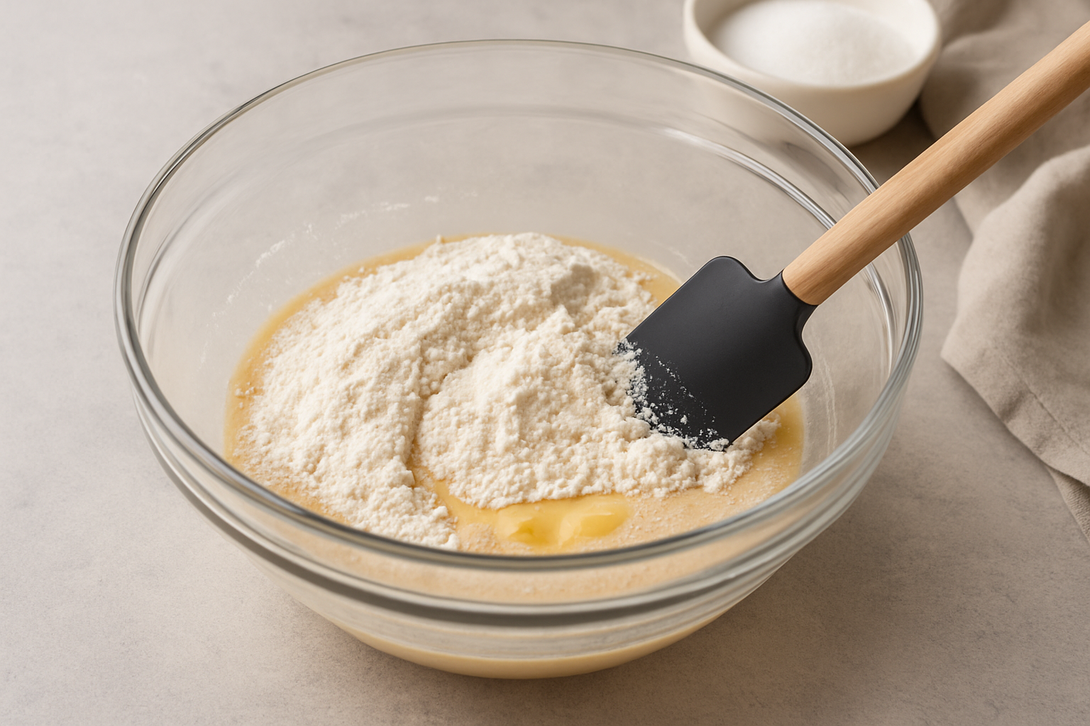 Add the all-purpose flour and salt to the wet mixture. Stir until a soft dough forms.