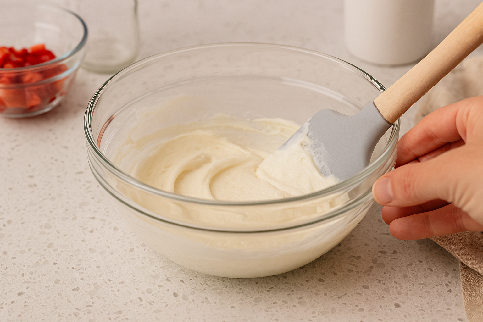 In a small mixing bowl, add the softened cream cheese, powdered sugar, and vanilla extract. Mix until smooth and creamy. Set aside.