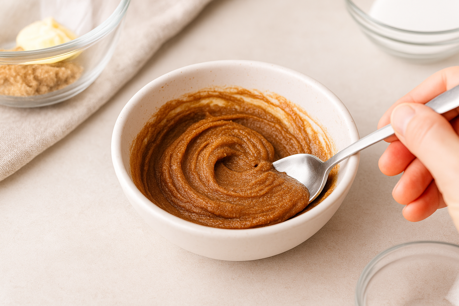 In a small bowl, combine the softened unsalted butter, brown sugar, and ground cinnamon. Mix until you have a soft, spreadable paste.